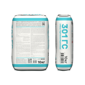 «301 ГС» является сухим готовым к применению составом проникающего действия на цементной основе с органическими добавками и химически активными вещества, способными к кристаллизации в порах обработанного бетона. Применяется для гидроизоляции и уплотнения структуры бетона. Максимальная фракция заполнителя 0,5 мм. Производится в соответствии с ГОСТ 34669-2020.
