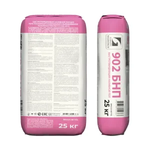 «902 БНП» является быстротвердеющей сухой смесью напольной самовыравнивающейся на цементной основе, предназначенной для ручного и машинного выравнивания бетонных полов, цементных стяжек на несущих основаниях и устранения перепадов под последующую укладку напольных покрытий. Рекомендуется для систем «Тёплый пол» и «Плавающий пол». Применяется внутри отапливаемых, непромерзающих помещений с умеренной и повышенной̆ влажностью. Толщина нанесения от 3 до 100 мм. Максимальная фракция заполнителя 1,25 мм. Соответствует ГОСТ 31358-2019.